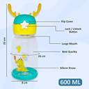 MGKENTERPRISE Deer Horn Multi Design Cute Mix Cartoon Sipper school Bottle for Kids with Strap 600 ml Water Bottle (Set of 1, Multicolor)