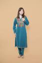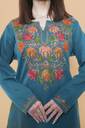 Stylish knitted woolen kurta featuring exquisite Kashmiri Aari embroidery on the neckline, sleeves, hemline, and matching trousers. The intricate floral patterns in vibrant shades add a refined ethnic appeal. Ideal for winter wear, festive occasions, and elegant day outings.