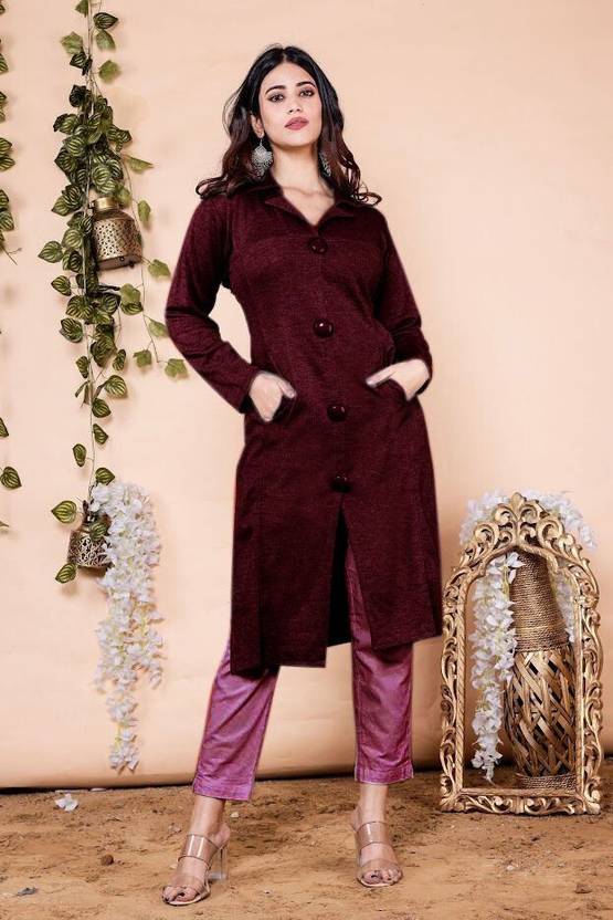 MHIZHA Women Solid Straight Kurta (Maroon)