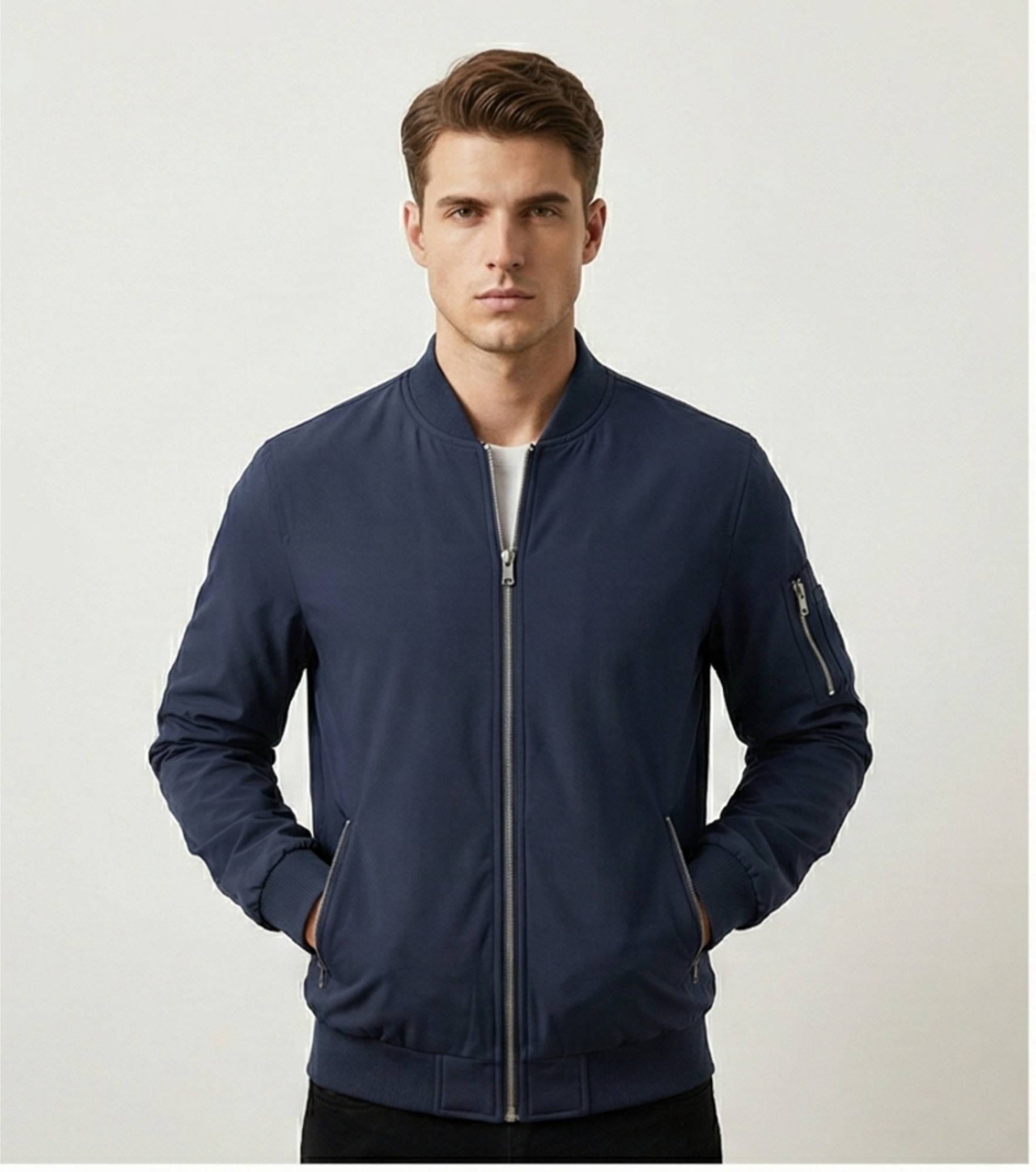 Men's Casual Jacket, Lightweight Transition Jacket, Aviator Jackets, Spring, Autumn Blouson with Pockets. Stay cozy and stylish with this warm, lightweight, and comfortable jacket. This jacket will keep you snug without weighing you down. This jacket is perfect for those looking for a modern and snug fit, Don't miss out, buy now and stay warm in style!