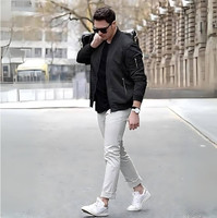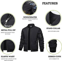 Featuring a solid pattern, this men's bomber jacket effortlessly combines a sleek design with practical functionality. Its minimalist yet bold aesthetic makes it a versatile choice for various outfits and occasions, which ensures you’re always dressed to impress while staying comfortable.