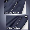 1 zipper sleeve pocket, 2 slant hand pockets, 1 inner pocket