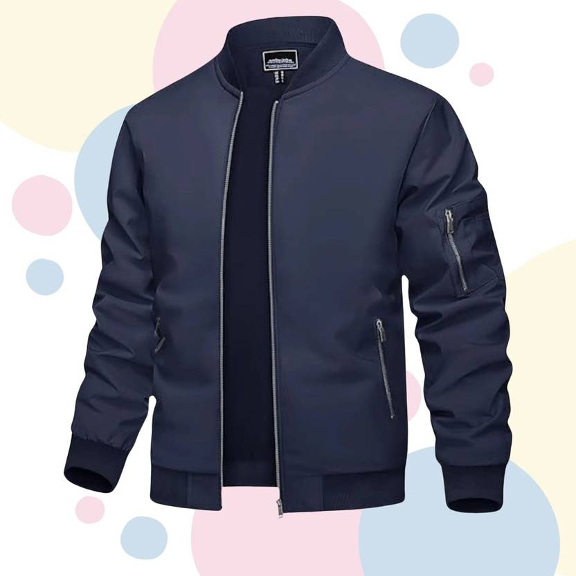 Men's Colorblock Casual Jacket, Lightweight Transition Jacket, Aviator Jackets, Spring, Autumn Blouson with Pockets