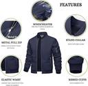 Men's Bomber Jacket, Lightweight Transition Jacket, Aviator Jackets, Spring, Autumn Blouson with Pockets Material: Nylon Style: Outdoor/Casual Color: Navy Blue, Black Size: S,M,L,XL,2XL Machine Wash ATTENTION: The color of the item may vary slightly due to the different shooting options, computer screens, or other factors. OCCASION: Outdoor, Casual, Sportwear, Working, Daily life, Hiking, Clubwear, Sports, Spring, Fall.