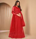 Self Design Net Semi Stitched Anarkali Gown (Red)