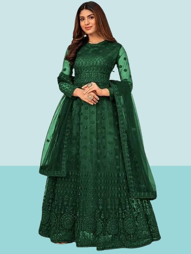 Net Semi Stitched Anarkali Gown (Purple)