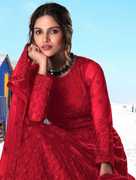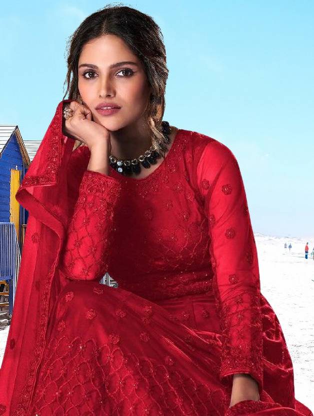 Net Semi Stitched Anarkali Gown (Red)