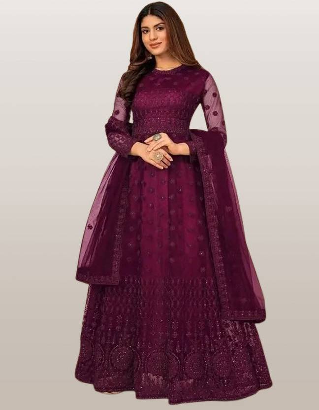 Net Semi Stitched Anarkali Gown (Blue)