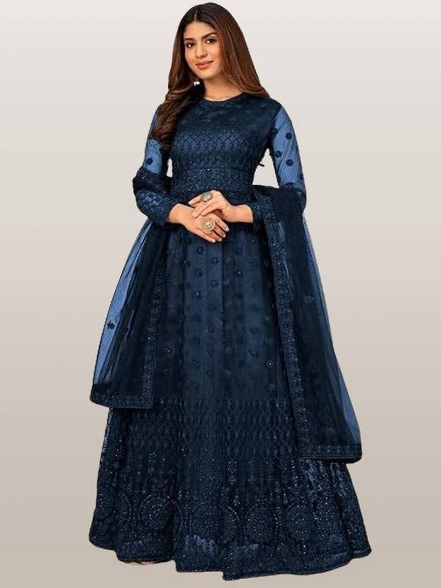 Net Semi Stitched Anarkali Gown (Blue)