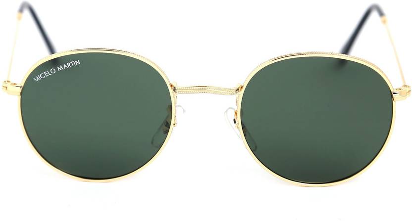 Classic Round Sunglasses for Men and Women, Unisex Polarized 100% UV Protected Sunglasses, Goggles, Medium Size, Gold Frame with Green Lens by Micelo Martin, Gifts for Men, Women, Husband, Birthday