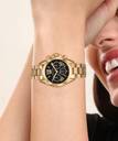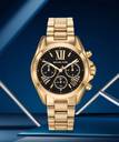 Exuding luxury and opulence right from its look, Michael Kors' Bradshaw is truly a class apart creation. Featuring a black sunray dial with gold-tone Roman numeral indexes, this 36mm this timepiece is accented by a gold-tone case, chronograph movement, and gold-tone stainless steel bracelet.