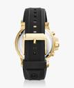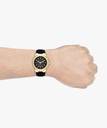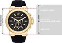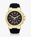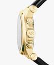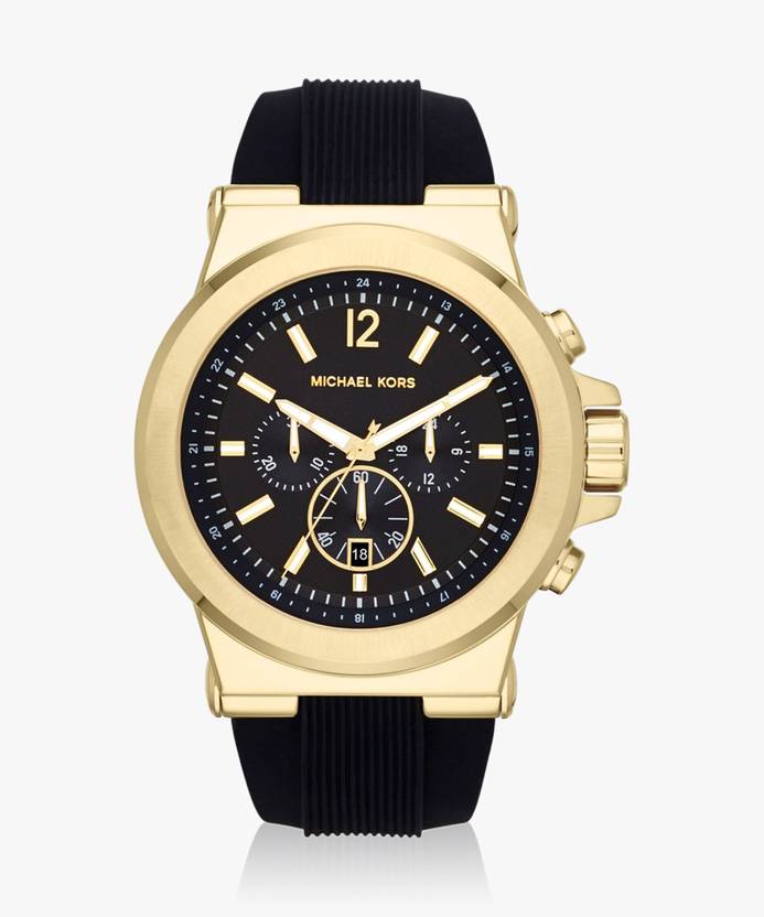 With diverse functionality and embedded technology, this Michael Kors Dylan Black Watch lets you express a flamboyant look with its refined design. This 48mm timepiece boasts a black chronograph dial with a lavish gold bezel and a date window.