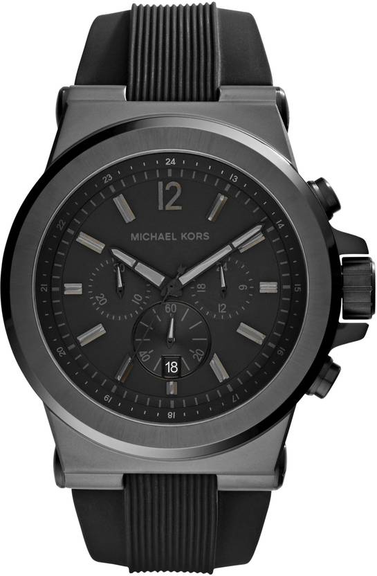 Design and structure is what sets a watch apart from others and this is done eloquently in this Dylan chronograph watch for men by Michael Kors. This watch features round black case include a black multi-dial clock face, black hand movements on it with date function and sleek baton hour markers. The stylish time piece also has chronograph that further adds uniqueness and charm to the piece. It fastens with a quality black rubber strap and is powered by a Japanese quartz movement.