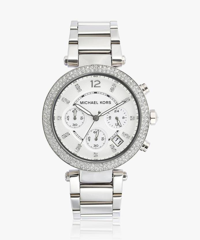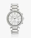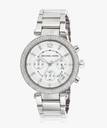 The striking details of this womens chronograph watch by Michael Kors will definitely leave everyone around you impressed. The silver dial has three sub-dials, with crystal markings and three silver hands. Encased in a silver stainless steel case with a crystallized bezel, it is attached to a three-link silver stainless steel bracelet, which is secured using a push-button deployant clasp. The watch, in stunning shades of silver is perfect for all the celebrations around you.