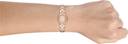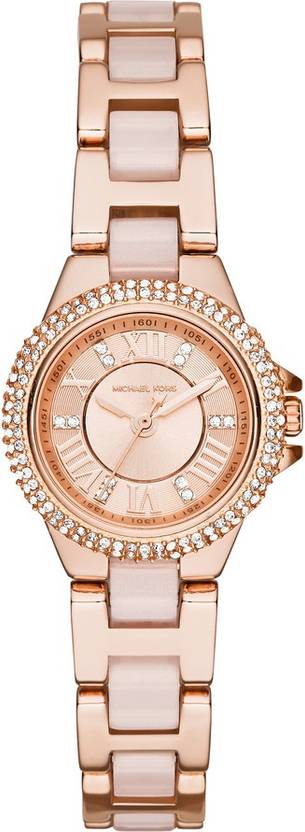 This Michael Kors is a contellation in your hand. With an abundance of crystal embellishents on it's case and dial, the watch boasts of luxury and glitz. Coming in a rose gold tinge, the embellished case make way for a stylish dial. The three arm watch features roman hourmakers which are alternated by cystal embellished dashes. With a stylish metallic strap, this watch is perfect for everyone who loves a dash of attention.