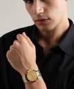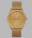 A perennial favorite, this iconic slim Runway men's watch is cast in classy gold-tone stainless steel with a sleek, gold sunray dial has gold three hand movements with gold tone stick indexes, stainless-steel rounded case and gold mesh bracelet secured by safety mesh buckle. The Slim Runway watch that shines with modern flair.