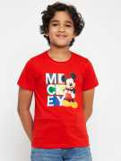 Mickey Mouse Family Boys Typography, Printed Pure Cotton Regular T Shirt (Red, Pack of 1)