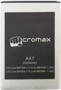 Battery Model :-A47, Capacity :- 1500mAh-2500mAh,, Long backup with smooth performance on your Micromax Bolt A47 mobile, New batteries should be charged for at least 3 to 4 hours for the FIRST time, The cellular phone must be turned off during recharge, Full performance is only achieved after 4-5 complete charge and discharge cycles, Battery will come in loose packing, not in company packing. We provide 1 months seller warranty