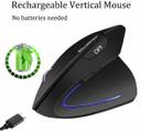 microware 2.4g USB Wireless Vertical Mouse Rechargeable Ergonomic Optical Computer Mouse with 3 Adjustable dpi 1000/1200/1600 Levels 6 Buttons for Laptop, pc, Computer, Desktop, Notebook Wireless Ambidextrous Optical Gaming Mouse (2.4GHz Wireless, Black)