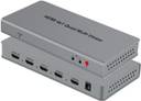 Introduction: HDMI 4x1 Quad Multi-viewer is a high performance with four HD screen segmentation and seamless switching output switch. It can display 4HD digital video signal on the same screen, and has a variety of video segmentation, seamless switching 4 HD input signal synchronously. The control methods of the switch is flexible, it can be switched via button and IR control. It’s a very practical and stable switch and easy to install, can be used in the major projects, meeting halls and other places. Features: Compatible HDMI 1.3a, HDCP 1.2, input compatible DVI 1.0 version Support IR control Support 4 HDMI input, 1 HDMI output Support 4 channels HDMI signal screen segmentation Support 4 channels HDMI signal seamless switching Support highest resolution up to 1080P/60Hz Support resolution: 1080P, 720P, 1080i, 1024*768, 1360*768 and so on Support audio output format: PCM2.0 Support standard 26AWG cable, input up to 15m/49ft, output up to 15m/49ft DC 12 V/2 A power adapter Specifications: Interface Type: HDMI Quantity: 1 Set Splitter Color: Gray Dimension: approx. 189*90*25mm / 6.7x3.2x0.9in Package Included: 1 x HDMI 4 x 1 Quad Multi-viewer Splitter 1 x Remote Control 1 x DC Power Adapter 1 x User Manual