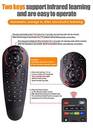 Features : -Plug and play, and free from installing driver. -2.4G transmission up to 10m. - Voice Search Function:Our air remote mouse built-in microphone which can chat with friends or input words via voice. -Specially designed for Android system to realize human-computer interactions comprehensively. -Applicable to: Smart TV, Android TV box, mini PC, HTPC. -Supports System: Linux, Android 2.x, Android 4.x, Win 2000, Win vista, Win7 32, Win7 64, Win8 32, Win8 64, MAC OS X. IR Learning Function The operation setps of infrared learning function are as follows: 1.In IR mode, press and hold the "TV"keys for 3 seconds. 2.When the red LED light flickers slowly, prompts to enter the IR learning state. 3.The launch tube of the infrared remote control faces the launch tube of the air mouse about 2- 3cm, press the infrared remote control button,when the infrared code value is recongized,the red LED light turns to flash fast. 4.When the red light flashed for 3 seconds, press any button to save(except "TV" button). when the functional storage is completed, the red LED lights turn to slow flash again, and then you can continue to learn. 5.If you dont need to continue learning,press the "TV"keys to quit the IR learning mode. Press the "TV"+"DEL"buttons for 5 seconds, the red LED flashes, the red LED flashes,prompting to restore the factory setting. Specification : - Transmission method: 2.4G RF wireless - Sensors: 6 axis Gyroscope - Number of keys: 34 - Range: >10m / 32.8ft - Material: ABS Plastic and silicone - Size:16*5.5cm*2.5/6.49*2.16*0.98 inch Package included: 1 X Remote Control 1 X USB Receiver 1 X User Manual