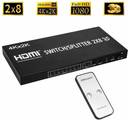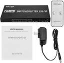 HDMI Matrix 2 x 8 Switch Splitter 2 In 8 Out Features: High performance HDMI Matrix with two HDMI inputs & two outputs, allows any source (Blue-Ray player, HD DVD player, satellite receiver, game system, etc.) to be shown on any of the two displays simultaneously. Compatible with HDMI/DVI and support multiple audio format, including LPCM 7.1CH and Dolby digital (DTS-HD / Dolby true HD / DTS / Dolby-AC3 / DSD). Support display resolutions up to 4Kx2K, 3D, 48-bit Deep Color. Support all 3D formats up to a 297MHz TMDS clock. Input support HDCP 1.4, output support HDCP v1.4a protocol. Full colorimetry including sYCC601, Adobe RGB, Adobe YCC601, xvYCC extended gamut color. Supports EDID control via EDID Selector. Equipped with remote control for easy one-key switching (change inputs/outputs, audio settings). Plug-and-play, easy to use. Specifications: Frequency Bandwidth: 2.97Gbps Input Port: 2 x HDMI Female input ports Output Port: 8 x HDMI Female output ports Power Supply: DC 5V 1A Package Included: 1 x 2 In 8 Out HDMI Matrix 1 x Remote Control 1 x Power Adapter