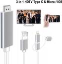 3 in1 design: 8Pin/Micro USB/Type-C to HDMI cable supports mirroring of what is displayed on your mobile device screen to your HDMI-equipped TV, Monitor, projector