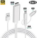 3 in1 design: 8Pin/Micro USB/Type-C to HDMI cable supports mirroring of what is displayed on your mobile device screen to your HDMI-equipped TV, Monitor, projector
