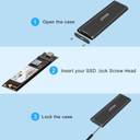?Compatibility & Hight Speed ?- This USB-C Gen 2 10Gbps or Thunderbolt 3 are recommended for extreme speed performance. One HD movie transfer only takes 2 seconds; Backward compatible with USB 3.1 Gen2 and USB 3.0 up to 5Gbps. M.2 M-key SSD Enclosure only Suitable for NVMe M-Key M.2 SSD (PCIE-based). Does not support M.2 SATA based SSDs, M.2 PCIe AHCI SSDs, M.2 PCIe devices such as WiFi and capture cards, mSATA SSDs, and non-M.2 form factor SSDs. ?Tool-Free ?- Tool-Free design allows quick and easy installation of your M.2 NVMe SSD, surpassed the tradition and completely saving the trouble of screwing, easy to use and portable.Capable of performance over 800MB/s read/write when using high performance NVMe media ?Aluminum Alloy Shell?- Adopts aluminum alloy shell, slim design, durable and excellent heat dissipation, be portable and easy to carry; Note: NVMe SSD is not included. Includes 2 x Thermal Pad?both USB Type-C and USB 3.0 (Type-A) cables. ?Blue Indicator ?- Blue Indicator shows the data transfer status, easy and clear;SSD file system must be supported on host operating system to be accessible. As with all SSDs, new media must be formatted before use. ?High Quality Master Chip ?- Adopts high performance controller IC, Complies with UASP, Trim which can effectively improve the speed and extend the lifetime of SSD.Plug-and-play compatibility with Multi OS, Windows 7/ 8/ 8.1/ 10/ Linux/ MAC.