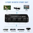 microware TV-out Cable 4K 60Hz 4x1 HDMI Switch,4 Port Auto HDMI Switch with IR Remote,Support HDCP 2.2 (Black, For TV)