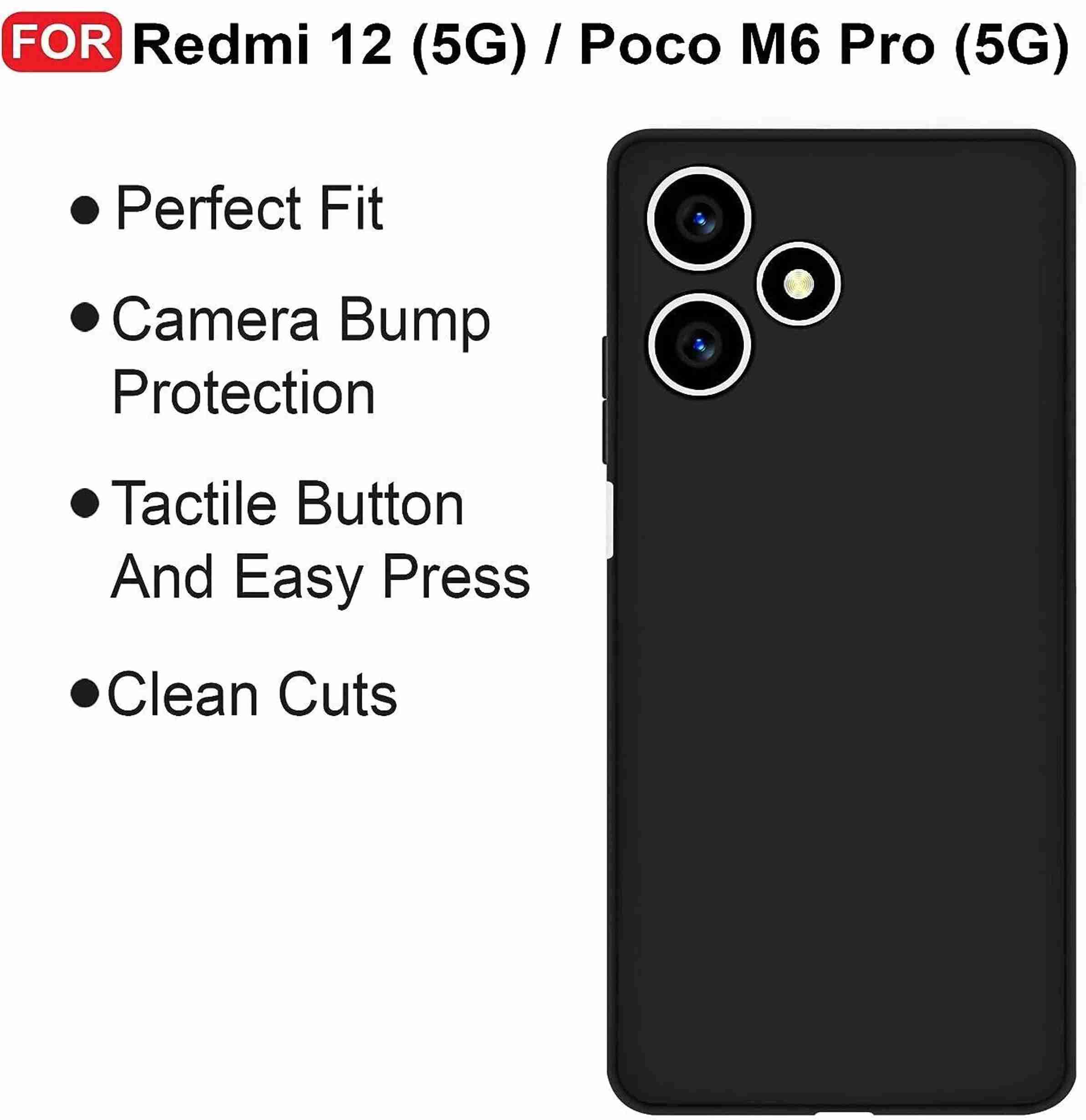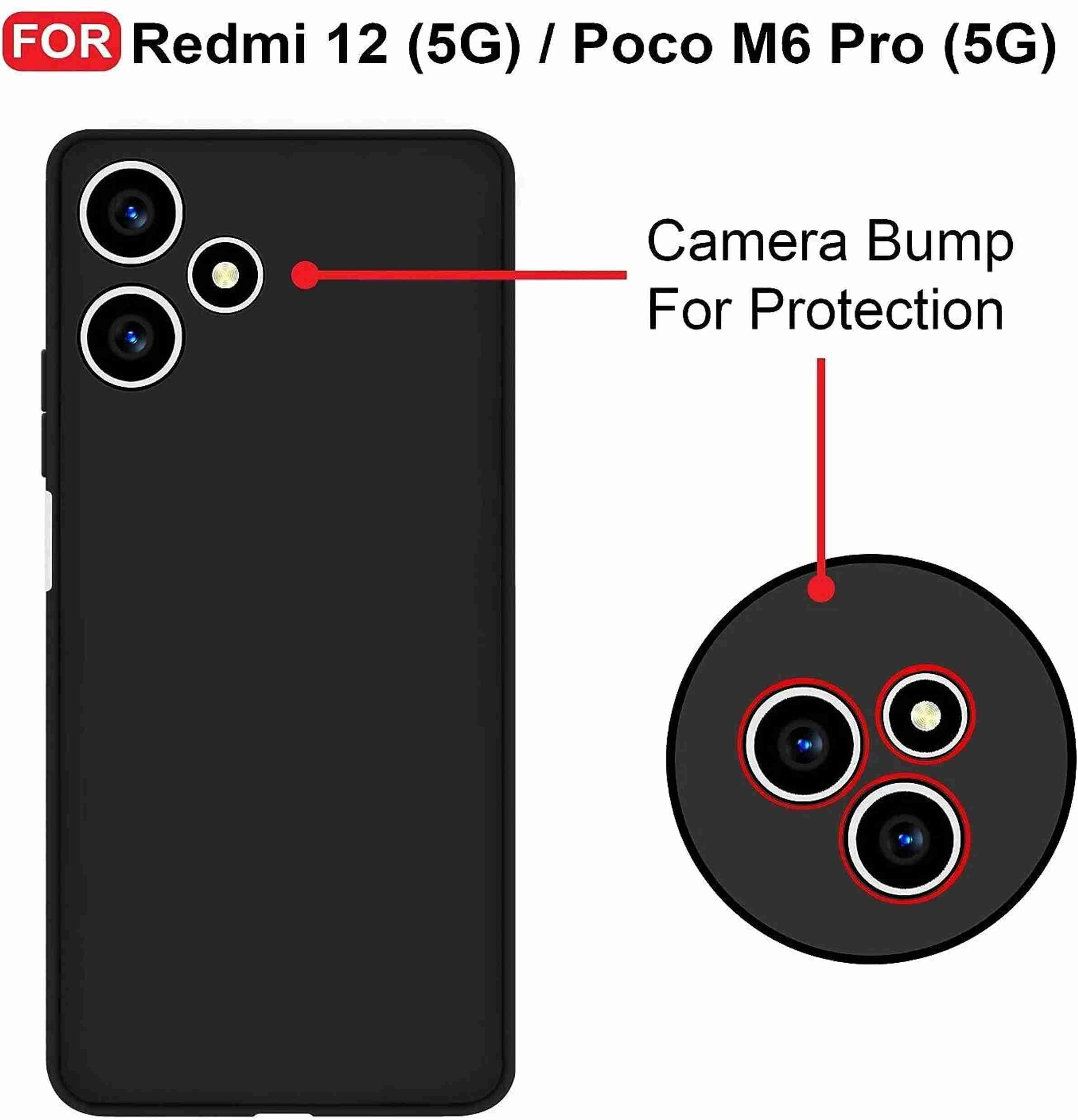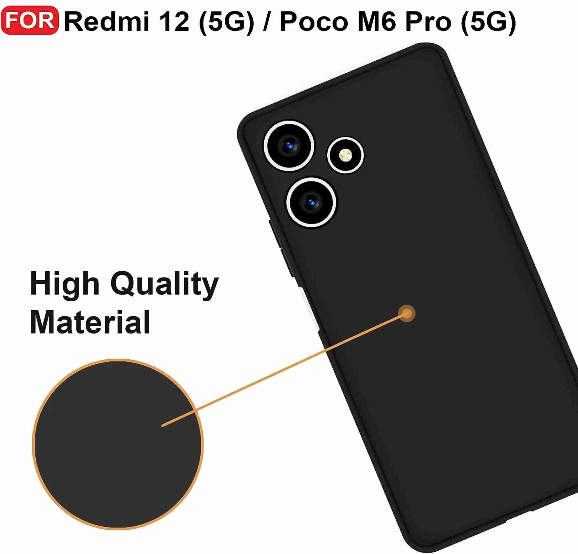 Back Cover for Redmi 12 5G (Black, Dual Protection, Silicon, Pack of: 1)