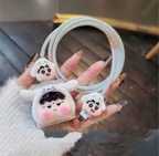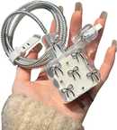Micvir Charger Cover for iPhone 18W-20W Charger, 3D Cartoon Design Silver Bow, Spiral Cable Protector (Grey)
