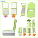 Midox 13 in 1 Slice & Dice has everything you need chop/slice/grate/shred vegetables, dice fruits or citrus juicing. It is manually operated and does not inflate on electricity bills. The push & clean button of the set requires less efforts that shorten the cooking time from start of preparation to the serving. The sharp stainless-steel blades are rust free and strong that make it long lasting and durable. Moreover, it comes with break-resistant container. Midox 13 in 1 Slice & Dice is compact and light weight thus easy to store and carry. Moreover, it occupies less space on the kitchen counter, unlike other traditional food processors. his slicer made from Food-Grade stainless steel & BPA-Free ABS plastic offers all the functionality of multiple appliances with changeable stainless blades. Multipurpose Dicer for All Cutting, Chopping, and Slicing Needs: Avoid the hassle and inconvenience of using different tools such as knives, peelers, shredders, and cutting boards for your cutting and chopping needs in the kitchen. The Midox Quick vegetable Dicer is the perfect solution for all cutting, chopping, dicing, slicing, peeling, and shredding tasks in your kitchen. Featuring a unique design with easy operation, you can perform a large number of kitchen actions on this dicer with ease and safety. Its ergonomic handle lets you chop large vegetables and fruits such as potatoes, capsicum, apples and more in one swift motion and the efficient design ensures uniform cutting at all times. High-Quality Materials for Ease of Use and Durability: Featuring a highly durable and sturdy plastic container with a strong rubber base at the bottom for enhanced grip, the Midox Quick Plastic Dicer makes it easy to cut your favorite fruits and vegetables on a kitchen table-top. All blades contained in the set are made from high-quality stainless steel and are extremely sharp for easy cutting operation. These blades are built to last for a long time, so you can continue grating cheese, peeling potatoes, dicing onions, or slicing pineapples for years, even with regular use. Easy to Clean and Maintain: Featuring a unique push-to-clean button mechanism, the Ganesh Quick Plastic Dicer, cleaning and maintaining this device is a breeze. Additionally, if you own a dishwasher, you can use it to clean this dicer as it is dishwasher safe. Its unique green color is aesthetically pleasing and adds to the look of your overall kitchen décor. The large detachable container can also be used to store your cut fruits and vegetables in the refrigerator, making the Midox Quick Plastic Dicer a multipurpose kitchen device with several applications. From the manufacturer