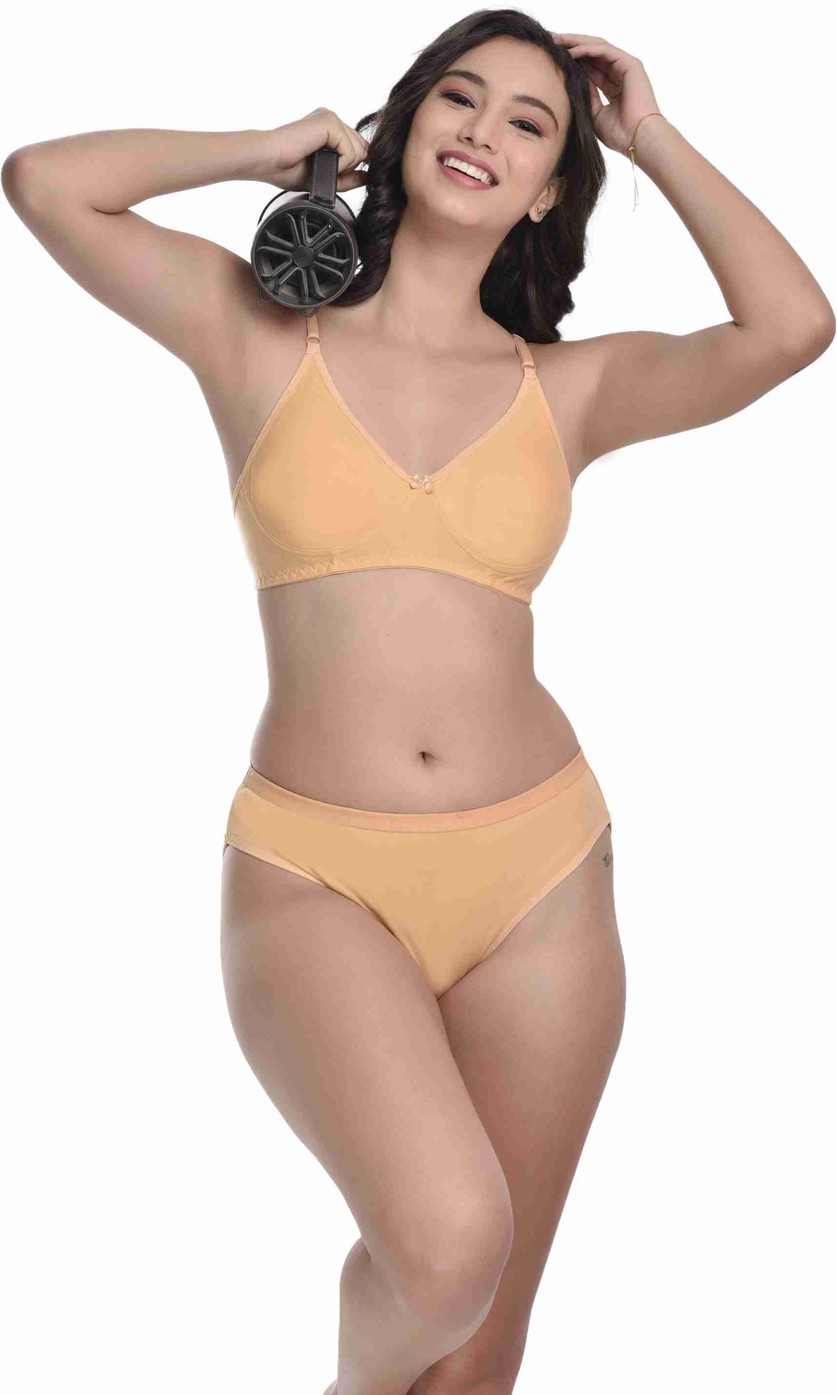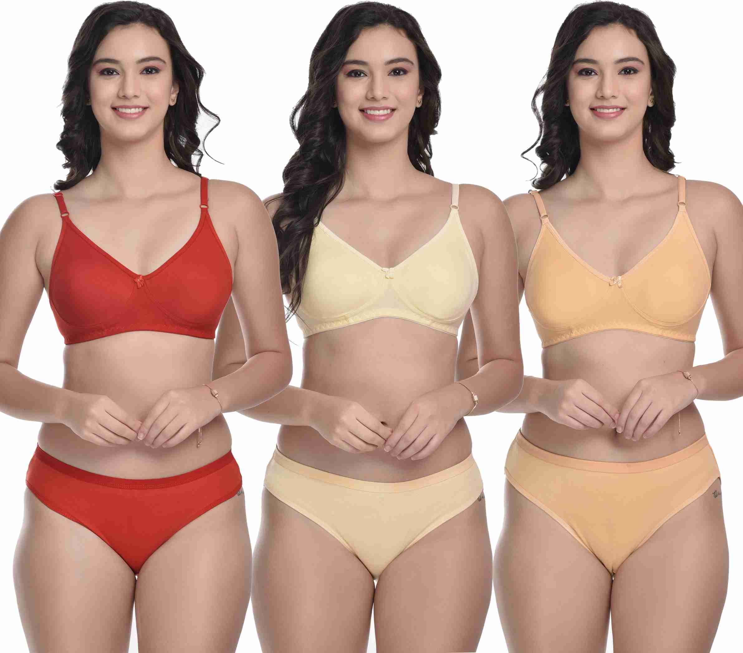 Bra & Panty Set Solid Gold, Beige, Red Lingerie Set