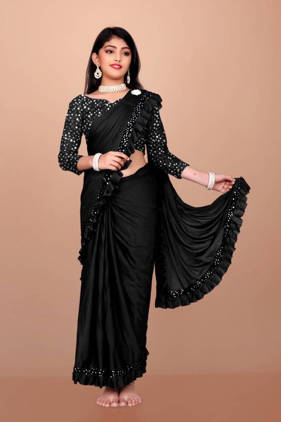 Mijaashree Fashion Embellished Bollywood Lycra Blend Saree (Black)