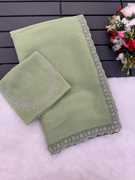 This Saree Made With Shimmer Fabric With 5.4 Meter Length. You Will Enhance Your Look.We Also Attached Lace Border in this Saree. Fabric Is best Quality,we Attached Blouse in this saree which is 0.8 meter.Blouse Is tottaly unstiched So you will stiched it according to your Size.You Also use this saree For Daily Wear At home And Partywear .Sometimes You Will use it For Festival Seasson.After Wearing this Saree You will Feel Something New So dont miss it.