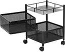 Our Vegetable rack stand can not only be used at kitchen as a storage stand, it also can be used at the bathroom, office, study room, bedroom, laundry room, supermarket etc. ?High Quality Material? - Made of high-quality durable metal , with black painting anti-rust finishing, this functional metal storage basket will meet your long term storage needs. ?360° Free movementto? - At the top of the table can storage things,don't waste space and storage solid does not shaked.Place things more clever, to meet your needs.With the universal wheel, 360° for easy cleaning, free movementto. ?Specifications?--Dimensions (fully stacked): 42cm (H), 32cm (W), 32cm (L) Dimension of vegetable rack. Color: Black. Some assembly required, instructions included. Please refer to the the images and description for more.