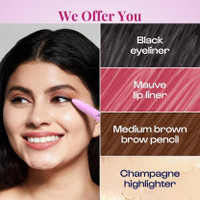 Boasting innovation, this four-in-one makeup pen revolutionises your beauty routine by condensing essential makeup products into a sleek device. Ideal for quick touch-ups and seamless transformations, this multi-functional makeup pen combines eyeliner, lip liner, brow pencil, and highlighter, offering endless creative possibilities in a single tool.