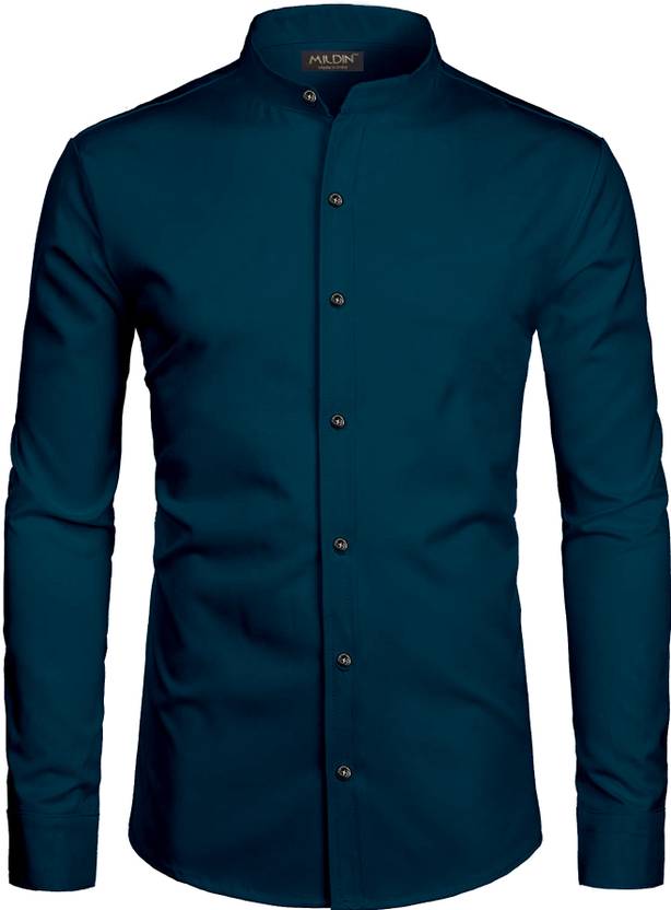 Men Slim ,Regular fit Mandarin , Chinese collar Full sleeve Solid, Plain Casual shirt