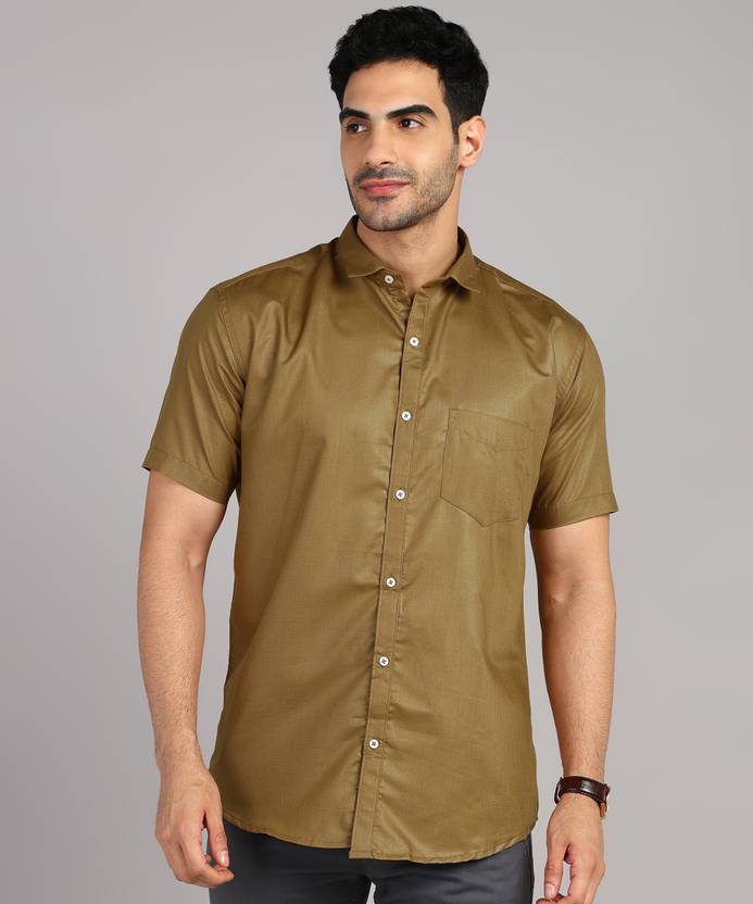 MILDIN Men Solid Casual Brown Shirt