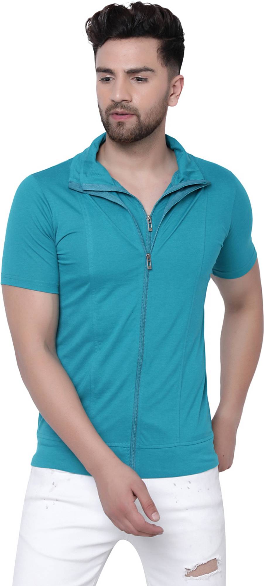 MILDIN Men Solid Casual Dark Blue Shirt