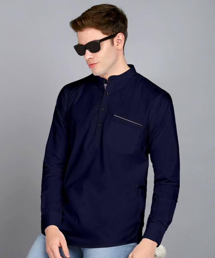 MILDIN Men Solid Casual Dark Blue Shirt