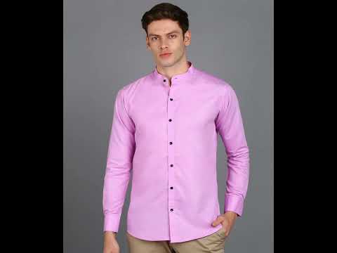 PRAIZY Men Regular Fit Solid Mandarin Collar Casual Shirt