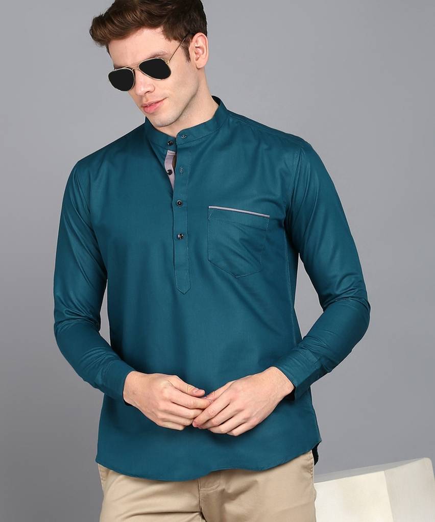 MILDIN Men Solid Casual Dark Blue Shirt