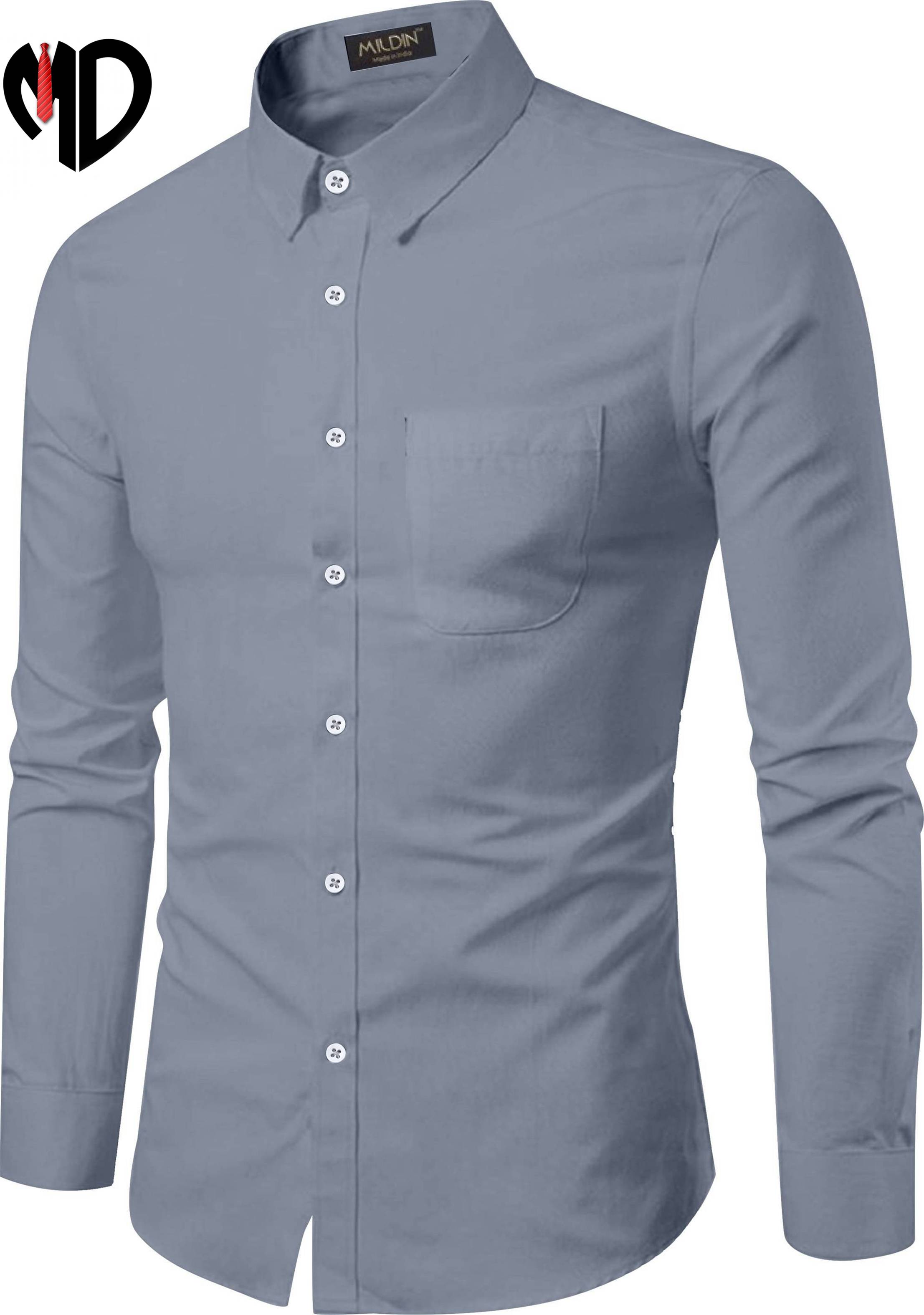 MILDIN Men Solid Casual Grey Shirt