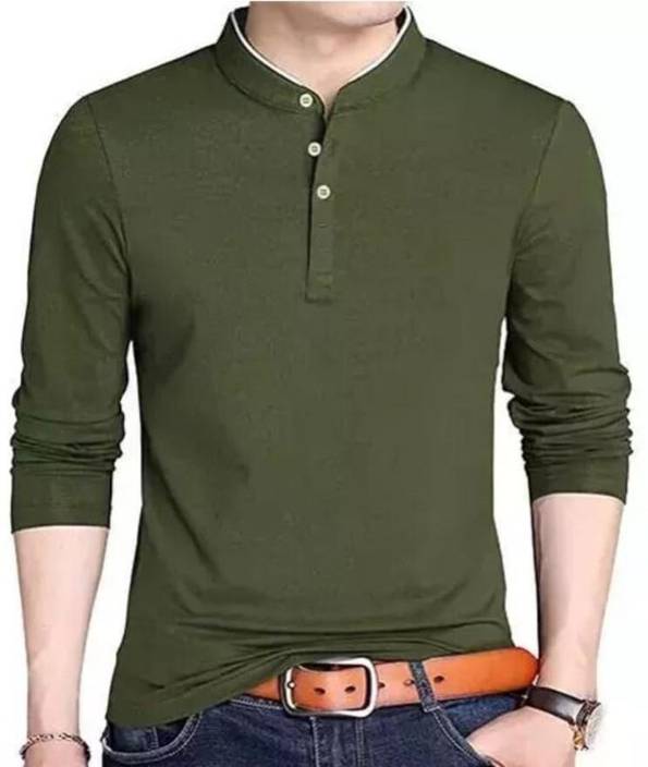 MILDIN Men Solid Casual Orange Shirt