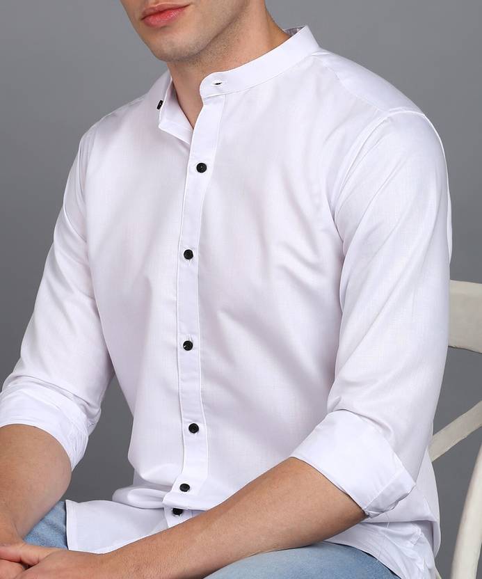 Men Slim ,Regular fit Mandarin , Chinese collar Full sleeve Solid, Plain Casual shirt