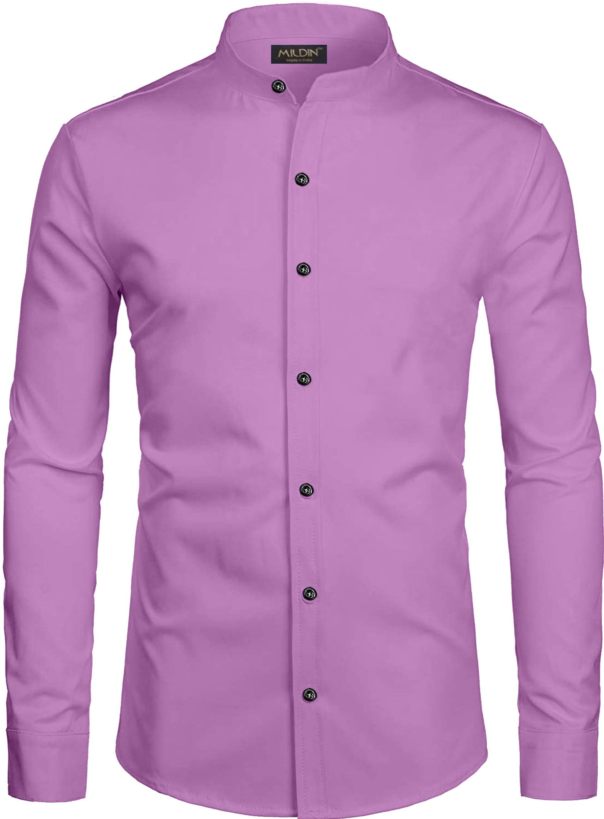 MILDINΒ Men Slim Fit Solid Mandarin Collar Casual Shirt