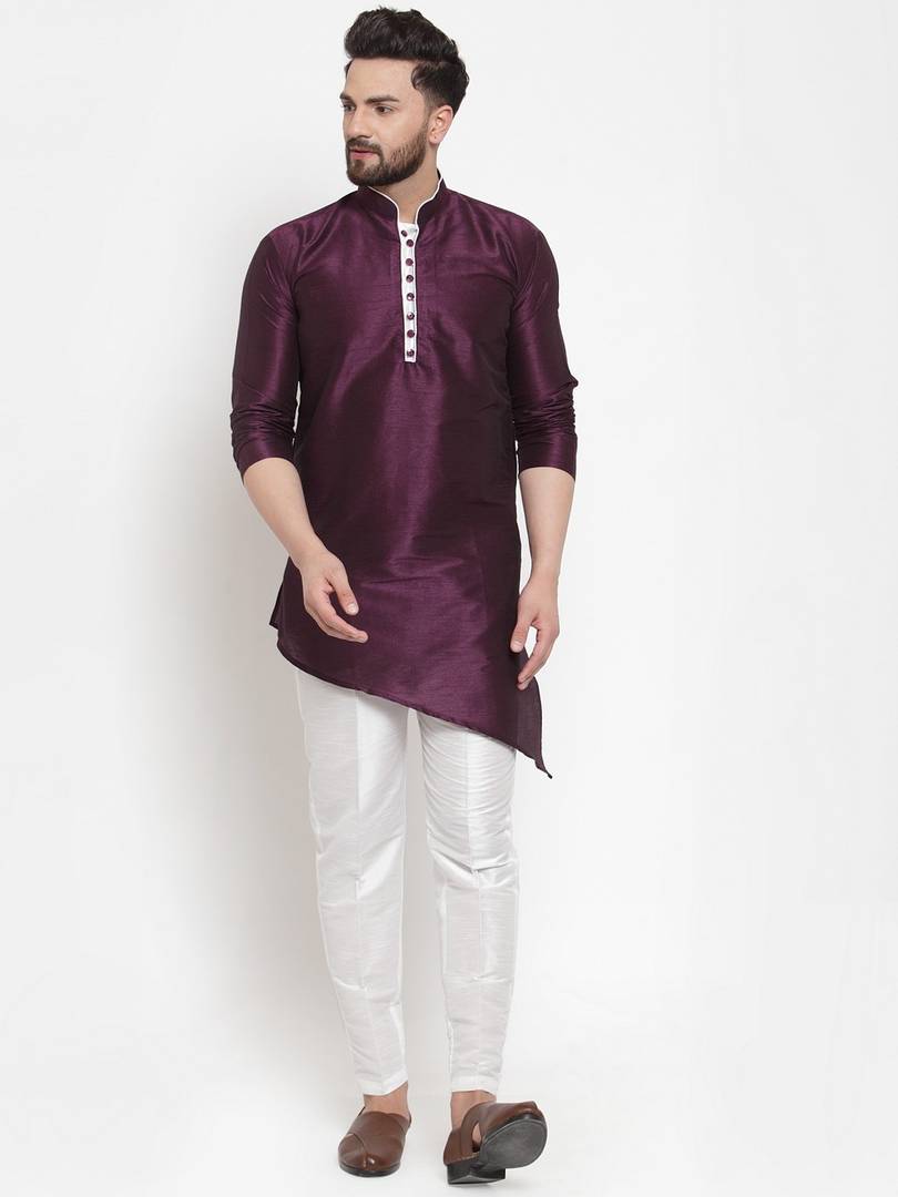 MILDIN Men Solid Straight Kurta (Purple)
