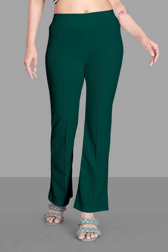 These women stylish solid pant from mildtouch are perfect pick for you.We offer a wide range of good quality attractive imported regular length casual pant.these dark green straight fit pant are made with 98% polyester and 2% lycra fabric.Wear these solid high rise pant with top and heels depending on your preference.kindly ensure the size chart before buying.